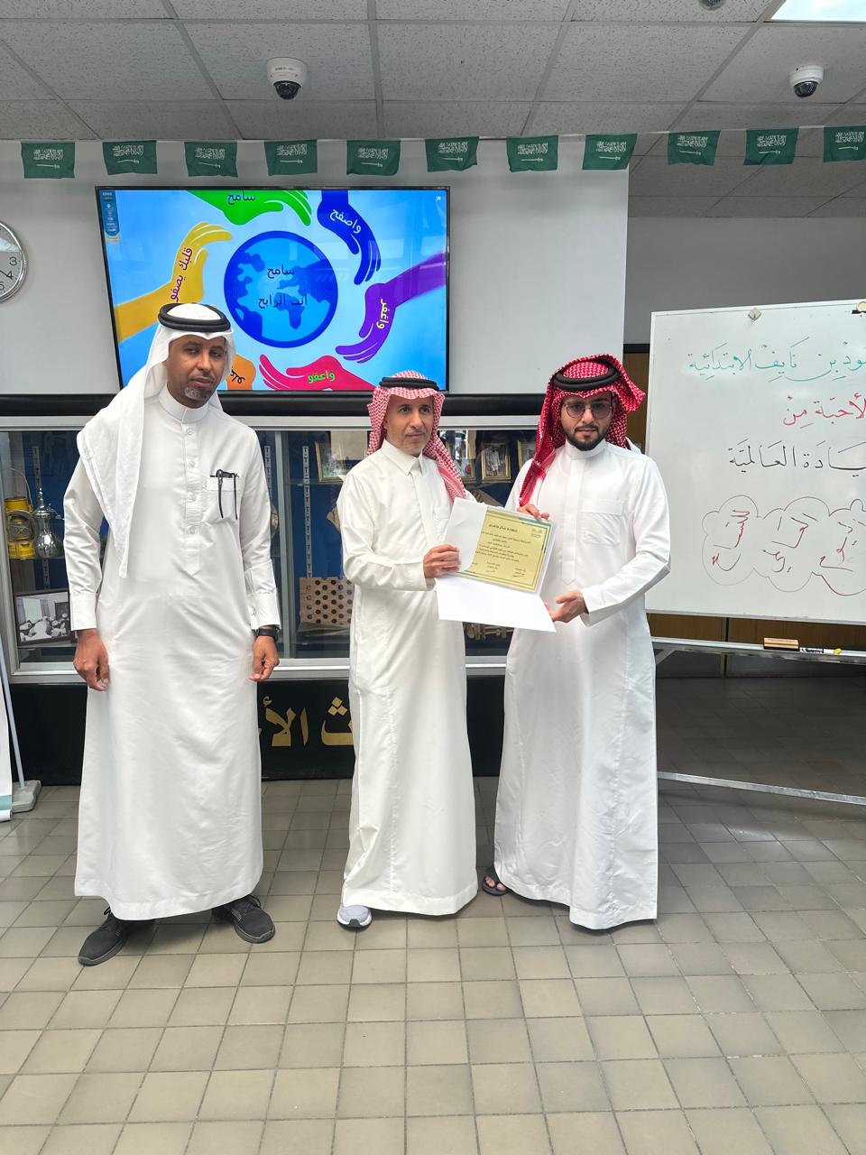 اختارت ابتدائية الأمير سعود بن نايف في الأحساء الاحتفاء باليوم العالمي للتسامح لتفعيل شراكتها المتميزة مع مدارس الريادة العالمية الأهلية، حيث استقبلت صباح اليوم الخميس، طلاباً من عشر جنسيات مختلفة.