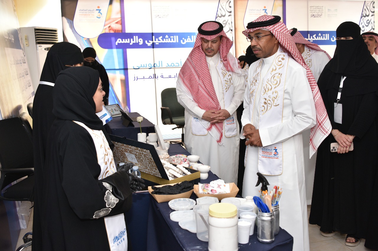 جاء ذلك خلال تدشينه لليوم العالمي للإعاقة 2025 وتكريمه للطلبة والطالبات الموهوبين والفائزين، والذي نظمه قسم ذوي الإعاقة بإدارة التعليم في قاعة الأمير محمد بن فهد بن جلوي، بحضور المساعدين ورؤساء الإدارات والأقسام، بافتتاح المعرض المصاحب لفعاليات اليوم العالمي والذي يضم منجزات الطلاب والطالبات من ذوي الإعاقة، حيث أظهروا إبداعاتهم ومهارات اليدوية والفكرية والتقنية، فضم المعرض متجر الكتروني صممته إحدى الطالبات لتسويق منتجاتها.
