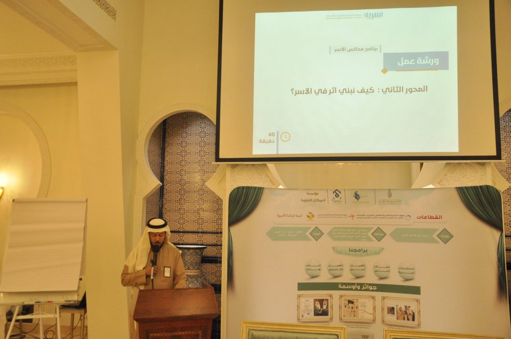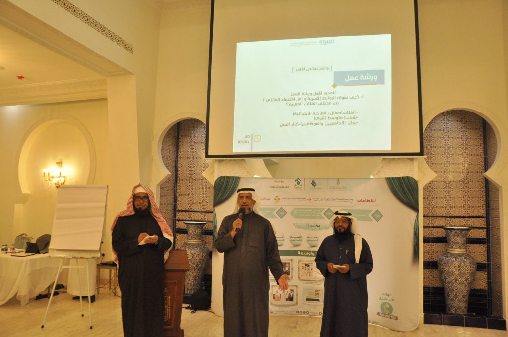 وحرصًا من الجمعية على تبادل الخبرات بين الأسر المشاركة التي زادت على 50 أسرة، عقد كل من الدكتور/ فؤاد بن عبدالرحمن الجغيمان، والأستاذ/ يوسف بن محمد الرويشد، ورشة عمل شارك فيها جميع الحضور بأفكارهم لتعزيز دور الأسرة في تنمية أفرادها، وارتباطهم بأسرهم ارتباطا بناءً يقيهم من أي صداقات موبوءة.