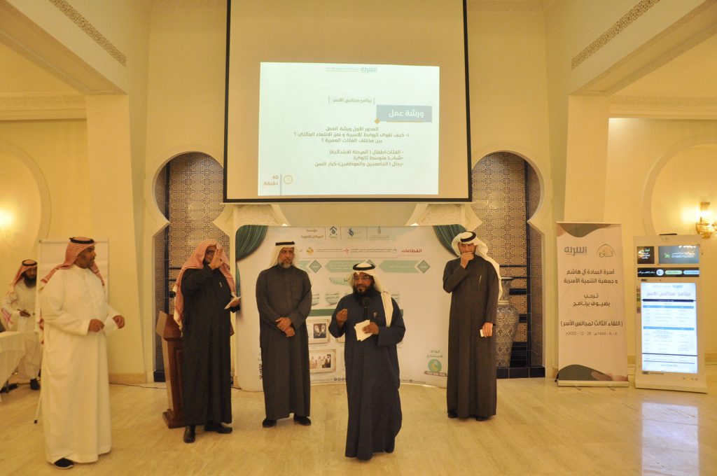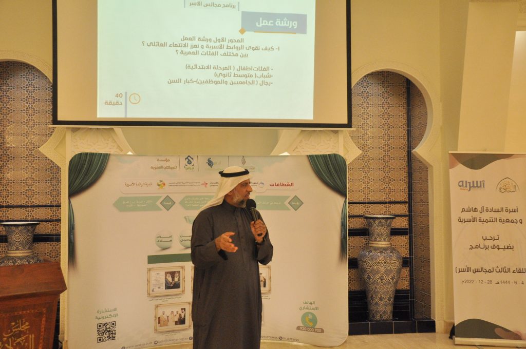 أقامت جمعية التنمية الأسرية بالأحساء مساء الأربعاء الماضي برنامج مجالس الأسر الثالث، الذي استضافه مجلس أسرة السادة آل هاشم بحضور سعادة مدير مركز التنمية الاجتماعية بالأحساء الأستاذ/مساعد بن محمد السعيد.
