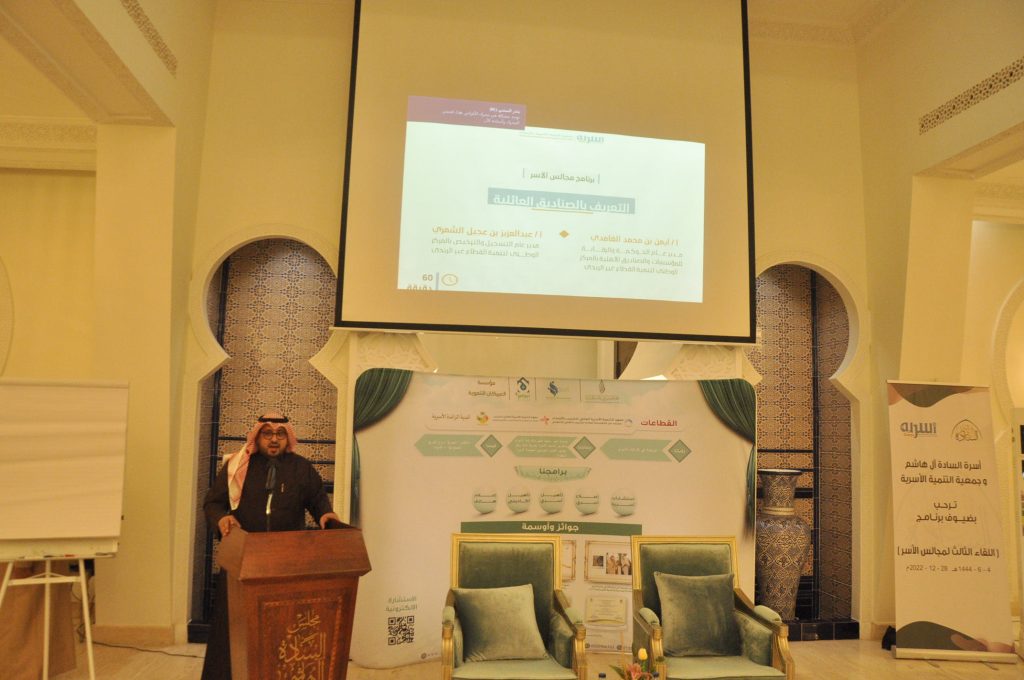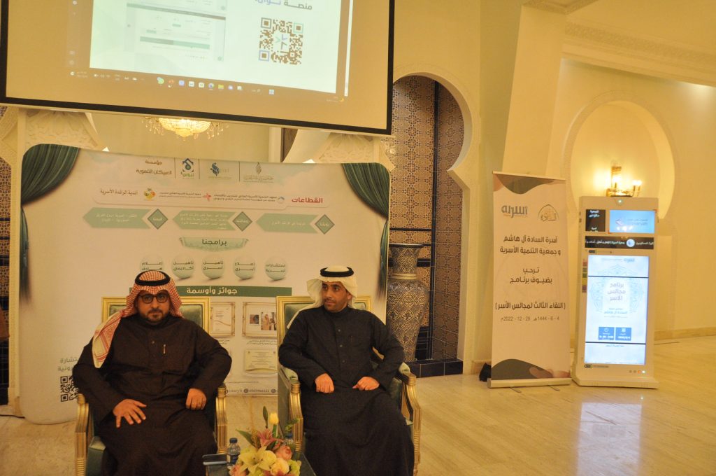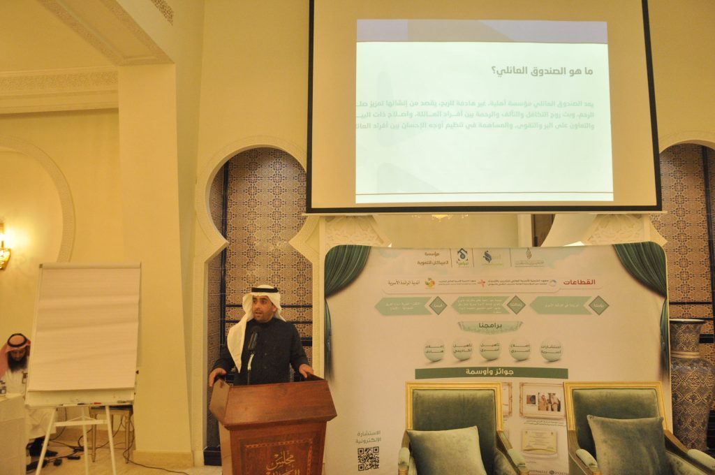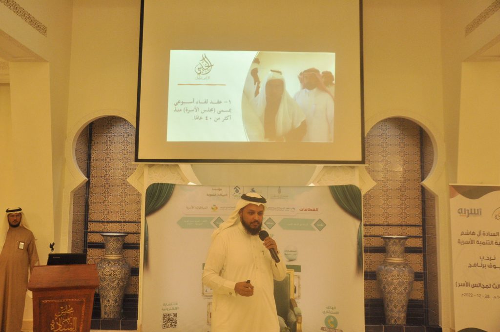 وأشار سعادة مدير عام الجمعية د.خالد بن سعود الحليبي، إلى أن من أهم أهداف عقد هذا البرنامج، التأكيد على الدور الكبير للمجالس الأسرية في بناء وتوجيه أفراد الأسرة، وتقوية الروابط بينها، وتشجيع المجالس الجديدة على العمل المؤسسي المثمر، وتعريفهم بالصناديق العائلية وثمراتها وكيفية الحصول على التراخيص الرسمية من المركز الوطني لتنمية القطاع غير الربحي، والاستفادة من عرض بعض الأسر لتجاربها المميزة.
