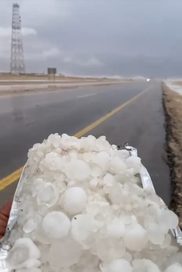 شهدت أجزاء من منطقة محافظة الأحساء اليوم الخميس27 جمادى الآخرة 1447هـ الموافق 18 ديسمبر 2025م، تساقط الثلوج على أجزاء متفرقة من أطراف على الطرق الرئيسية السريعة طريق ( البطحاء – سلوى ) وعند بحر بو قميص، ولا تزال الأمطار مستمرة، صاحبها هطول أمطار من متوسطة إلى غزيرة على المحتفظة وعدد من مدنها وقراها والمراكز والهجر التابعة لها .