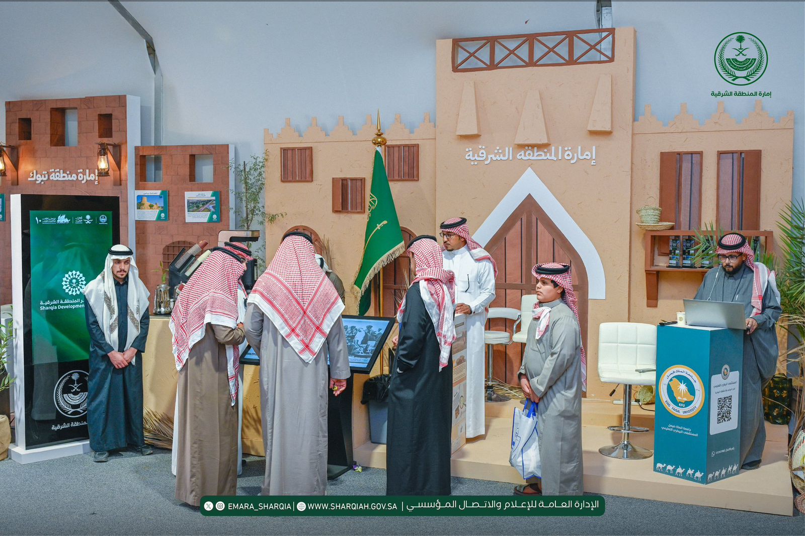 ويستعرض جناح الإمارة أبرز معالم المنطقة التاريخية والسياحية، وقصة بداية النفط، والزيارات الملكية، إضافة إلى المشاريع التنموية في مدن ومحافظات المنطقة.
