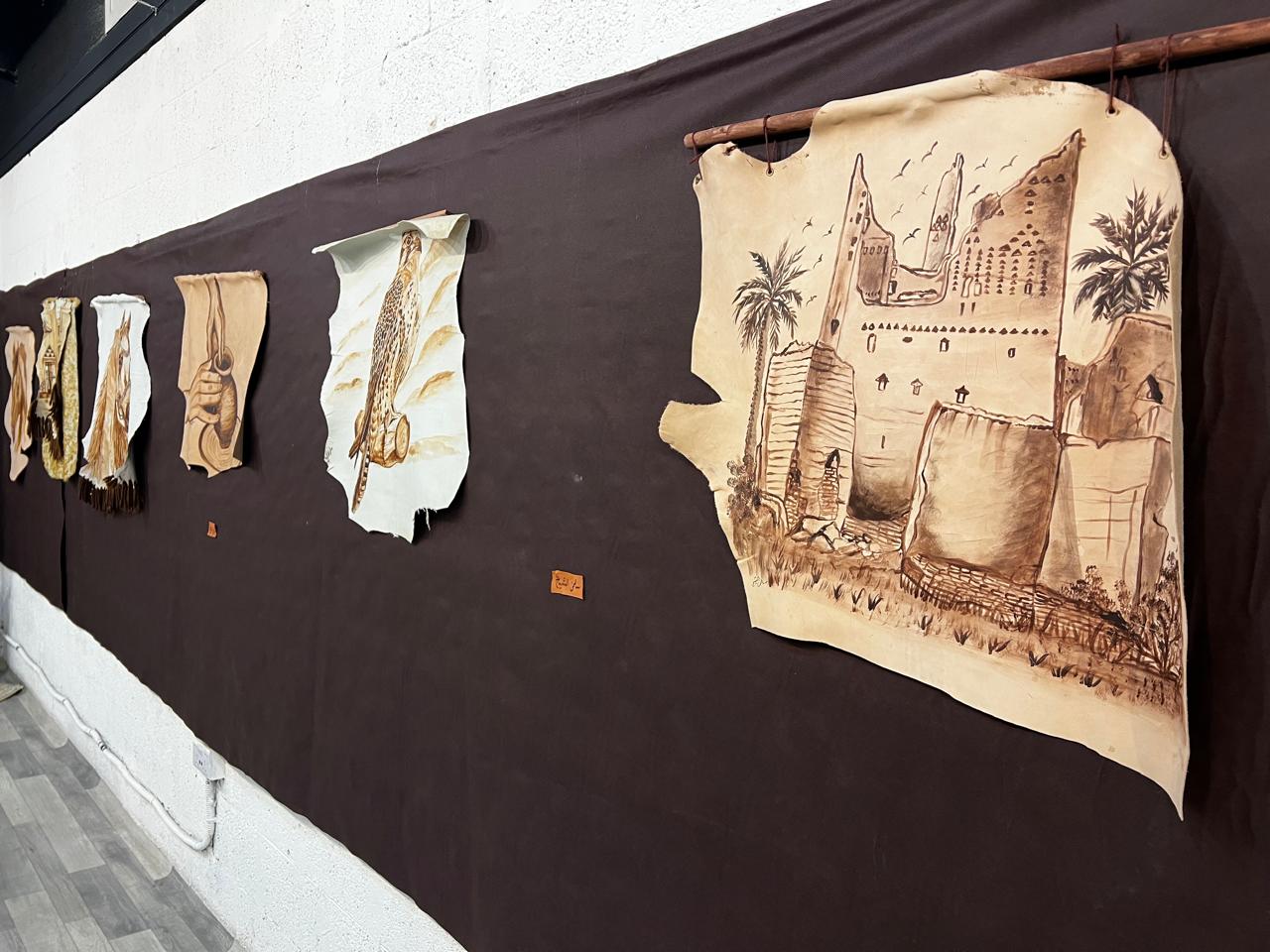وعن المواد المستخدمة، أكدت المبرزي أن جميع الجلود المعروضة هي جلود محلية مستخلصة من الإبل، مشيرةً إلى أن الجلود الطبيعية بمختلف أنواعها هي الخيار الوحيد والأمثل للرسم، في حين يُستبعد الجلد الصناعي تمامًا لكونه مكوّنًا من البلاستيك الذي يذوب بمجرد ملامسة الكاوية لسطحه.