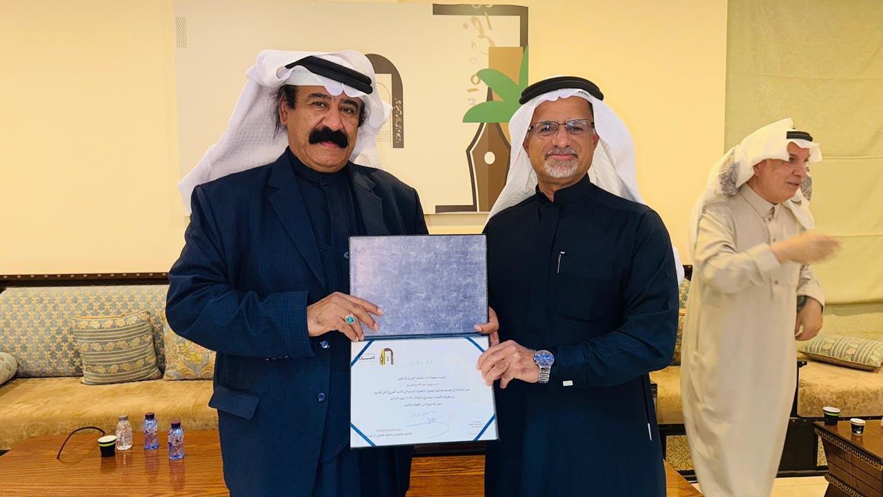 واختُتمت الأمسية بتسليم الأستاذ صالح الحربي درع التكريم للدكتور محمد بن حامد الشمري تقديرًا لإسهاماته العلمية، مع فتح المجال لمداخلات الحضور ونقاشاتهم، قبل التقاط صورة جماعية وثّقت المناسبة وعكست روح التفاعل والتقدير التي تميّز فعاليات جمعية أدباء الأحساء.