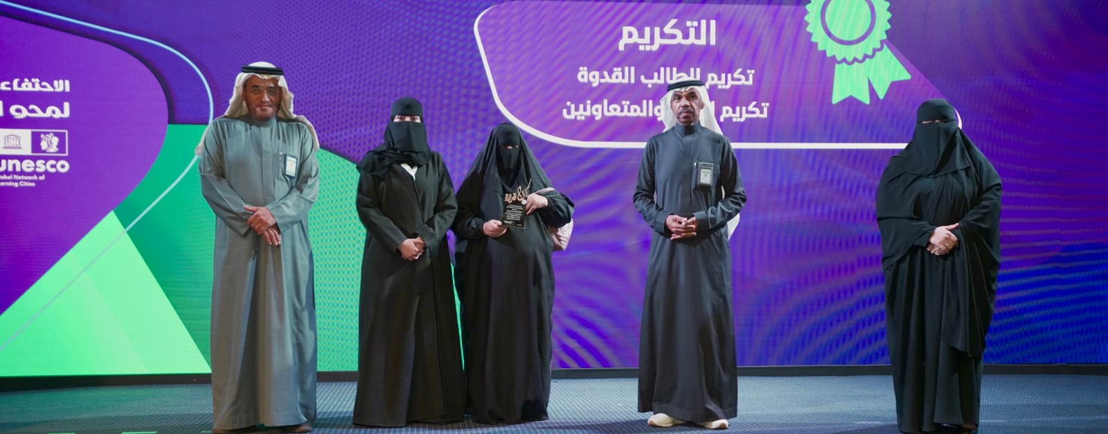 وفي ختام الفعالية، كرّم مدير التعليم القدوات من الطلاب والطالبات في مدارس التعليم المستمر، يرافقهم مديرو ومديرات مدارسهم، حيث بلغ عدد المكرمين والمكرمات 95 شخصًا. كما دشّن برنامج «نور» لمحو الأمية.