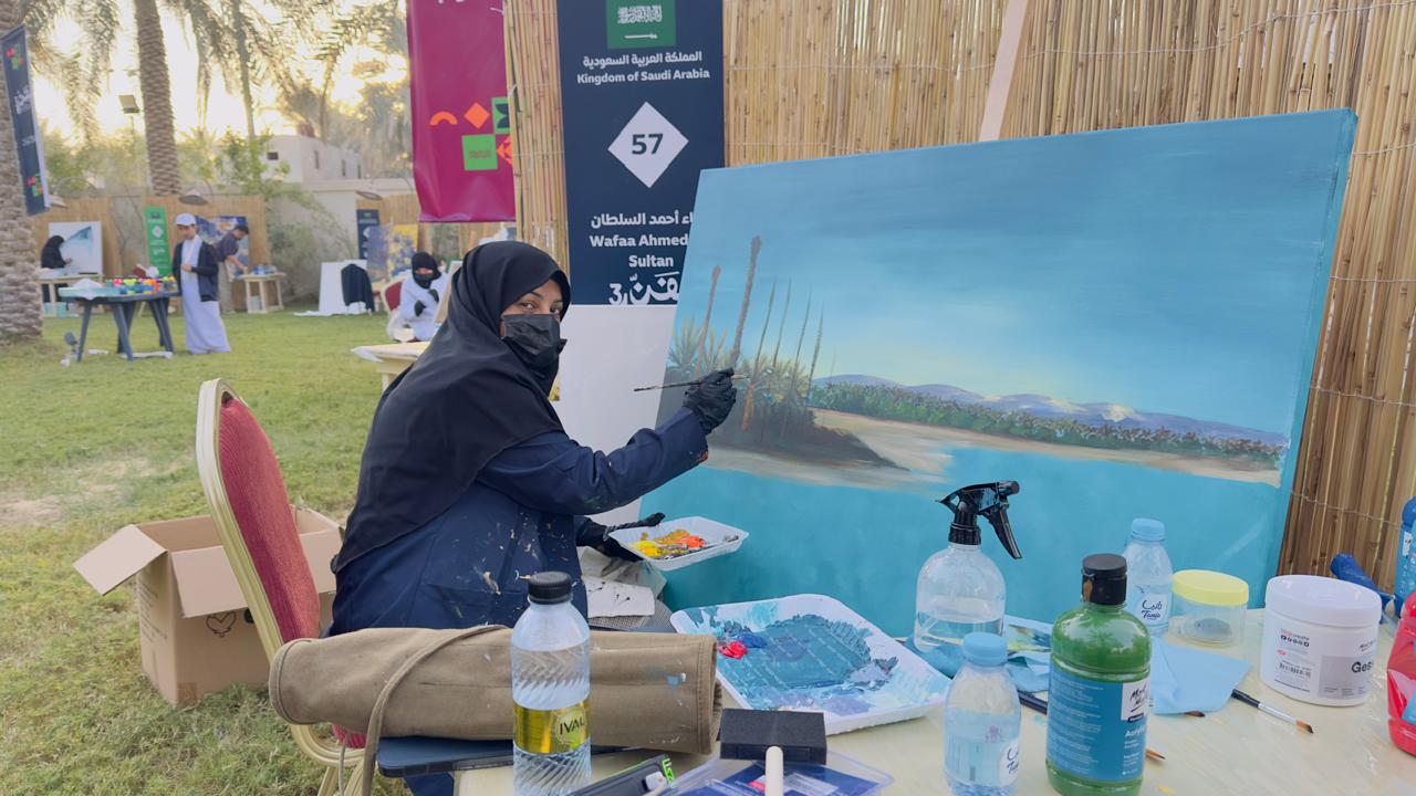 وجمع الملتقى (67) فنانًا وفنانة من مختلف الجنسيات والمدارس الفنية، في مشهد احتضنته بيئة طبيعية بين النخيل الباسقة، وأسهم في تبادل الخبرات، واستعراض أساليب الفن التشكيلي المتنوعة، وخلق مساحات حوار وتجارب إبداعية مشتركة تعكس البعد العالمي للملتقى.