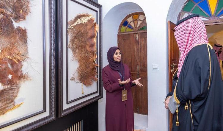 واطلع سموه في قاعة “رحلة البشت” على صور شخصية بالبشت للملك عبدالعزيز بن عبدالرحمن آل سعود -رحمه الله-، وأبنائه الملوك سعود وفيصل وخالد وفهد وعبدالله -رحمهم الله-، وخادم الحرمين الشريفين الملك سلمان بن عبدالعزيز آل سعود، وصاحب السمو الملكي الأمير محمد بن سلمان بن عبدالعزيز ولي العهد رئيس مجلس الوزراء -حفظهما الله-، كما شاهد دقة بشت الملك عبدالعزيز -رحمه الله- .
