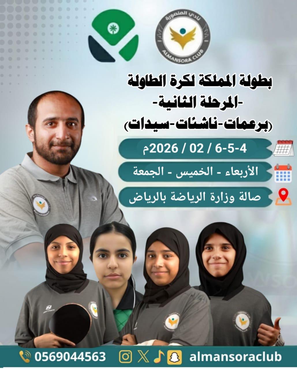 تتجه أنظار المهتمين برياضة كرة الطاولة إلى العاصمة الرياض، حيث يشارك فريق سيدات نادي المنصورة في المرحلة الثانية من بطولة المملكة لكرة الطاولة، في محطة تنافسية بارزة تجمع نخبة الأندية السعودية، وتعكس ما وصلت إليه اللعبة من تطور فني واحترافية متنامية.