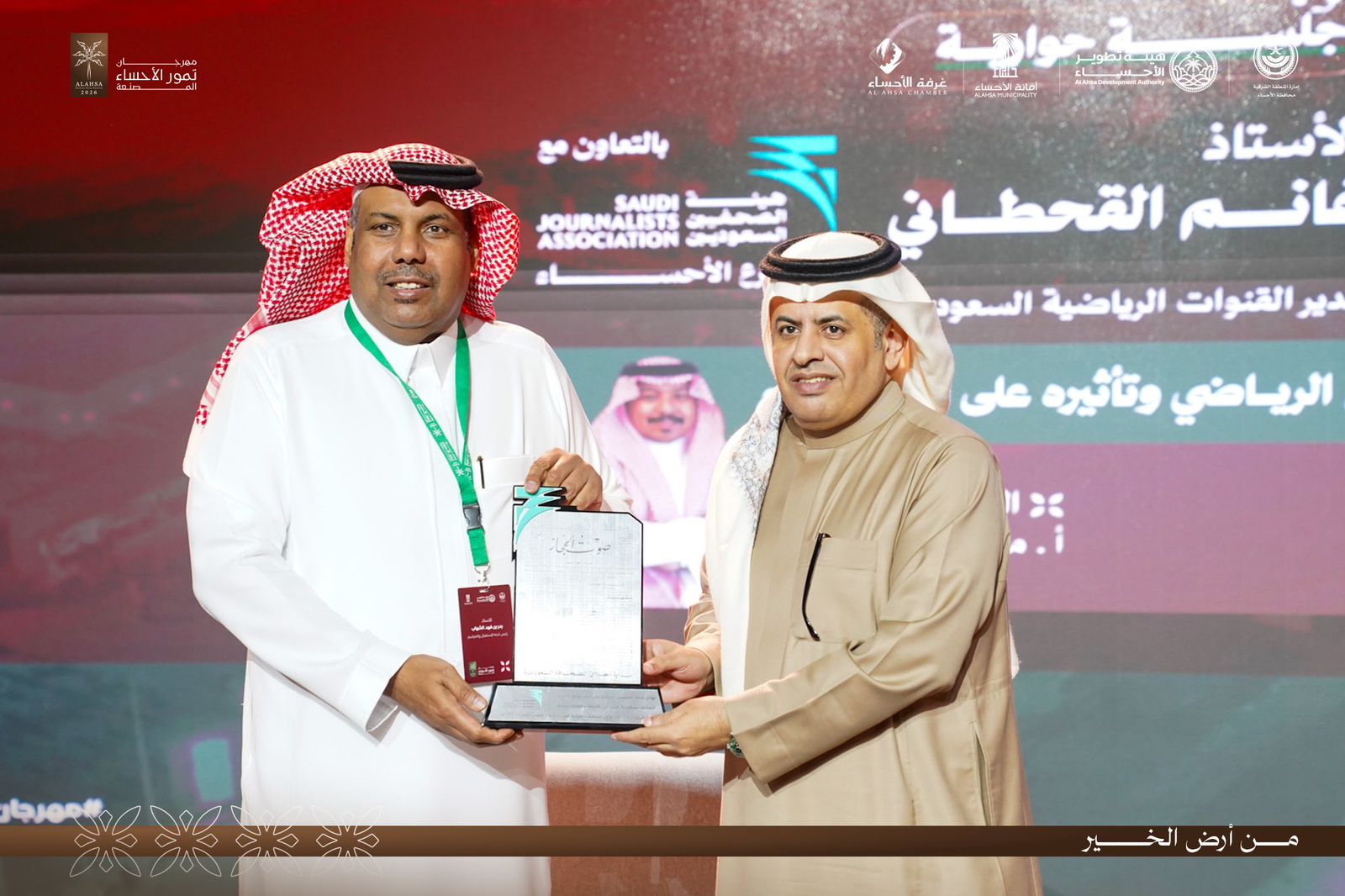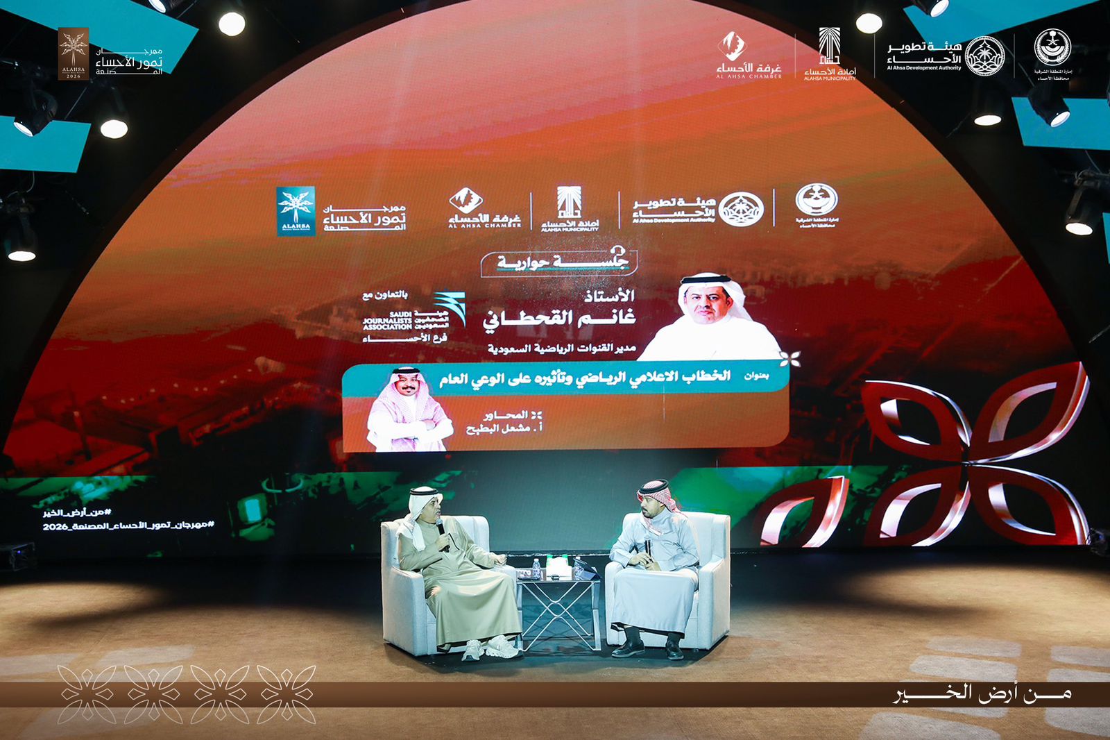 ضمن فعاليات مهرجان تمور الأحساء المصنعة، أُقيمت جلسة حوارية بعنوان “الخطاب الإعلامي الرياضي وتأثيره على الوعي العام” ، استضافت الأستاذ غانم القحطاني وأدار الحوار الأستاذ مشعل البطيح .