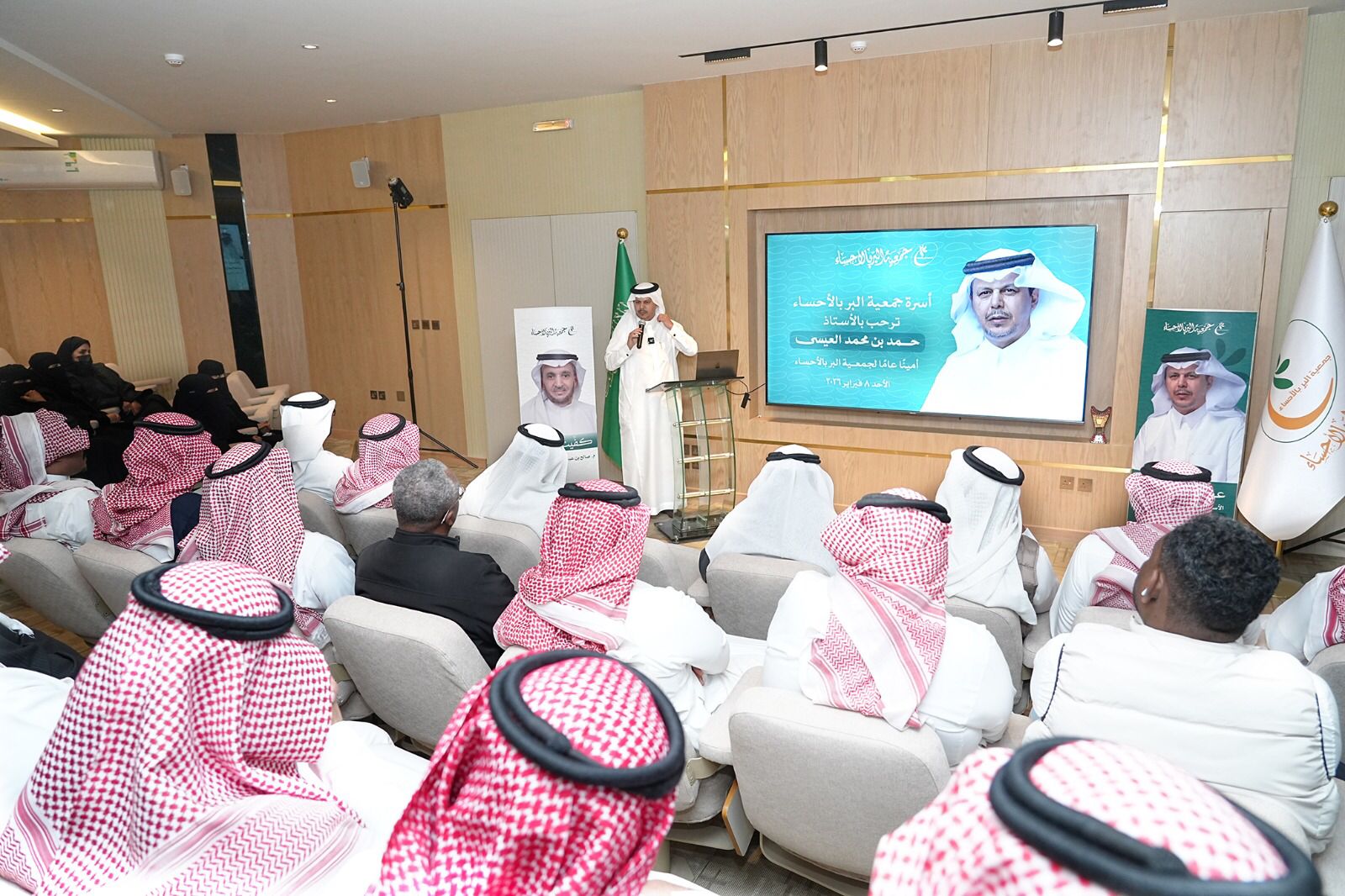 وبهذه المناسبة أقام المهندس صالح بن عبدالمحسن آل عبدالقادر لقاءً لاستقبال الأمين العام الأستاذ حمد العيسى، في مسرح الجمعية بحضور عدد من أعضاء مجلس الإدارة، والإدارة التنفيذية، ومنسوبي الجمعية.