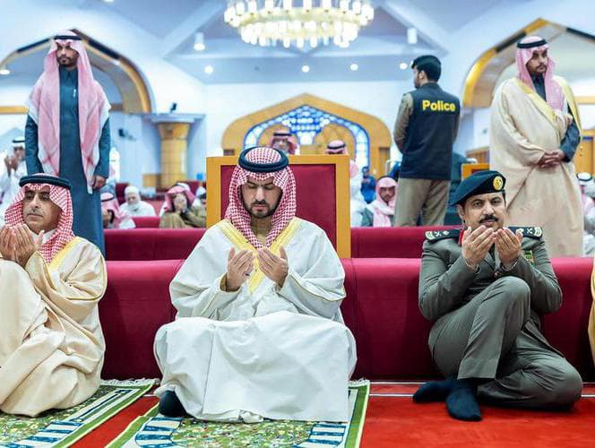 وأدَّى الصلاة مع سمو نائب أمير المنطقة، وكيل الإمارة تركي بن عبدالله التميمي، وعددٌ من المسؤولين من مدنيين وعسكريين .