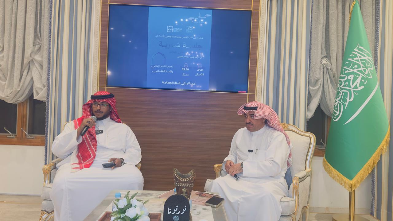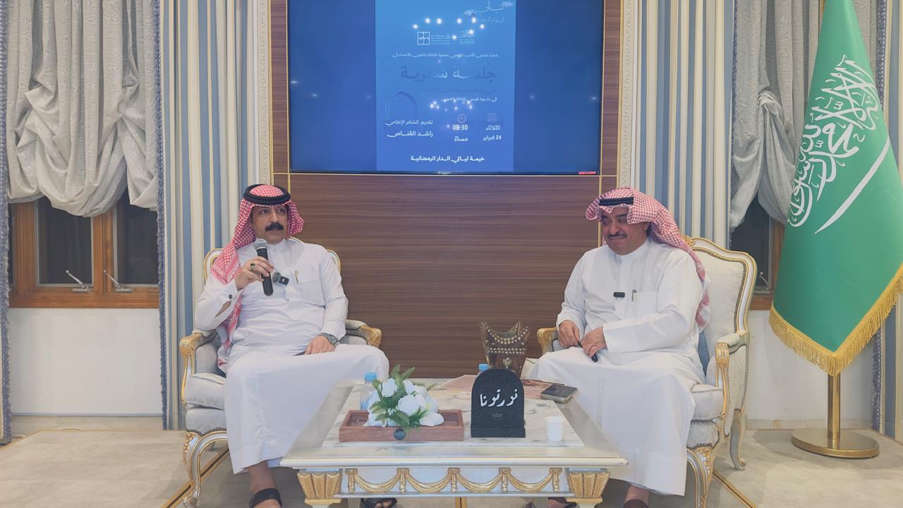 وتضمّنت الأمسية قصائد رمضانية وابتهالات وجدانية وقراءات شعرية استلهمت روح الشهر الفضيل، واستحضرت معاني الإيمان والتأمل والصفاء، في أجواء ثقافية وإيمانية عكست حيوية المشهد الأدبي في الأحساء، وأكدت استمرار دور الدار في احتضان الإبداع الشعري وتعزيز حضوره خلال ليالي رمضان المباركة.