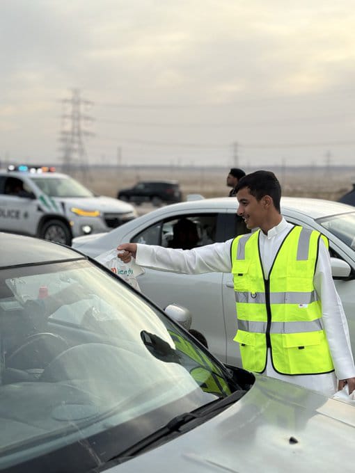 حيث تم توزيع اكثر من 520 وتواجد اكثر من 15 مشارك متطوع بالموقع، لتوزيع آلاف الوجبات الرمضانية يومياً على المسافرين بطريق (الأحساء – الظهران) عند نقطة التفتيش لأمن الطرق بالأسمنت بهدف تعزيز التكافل والسلامة المرورية .