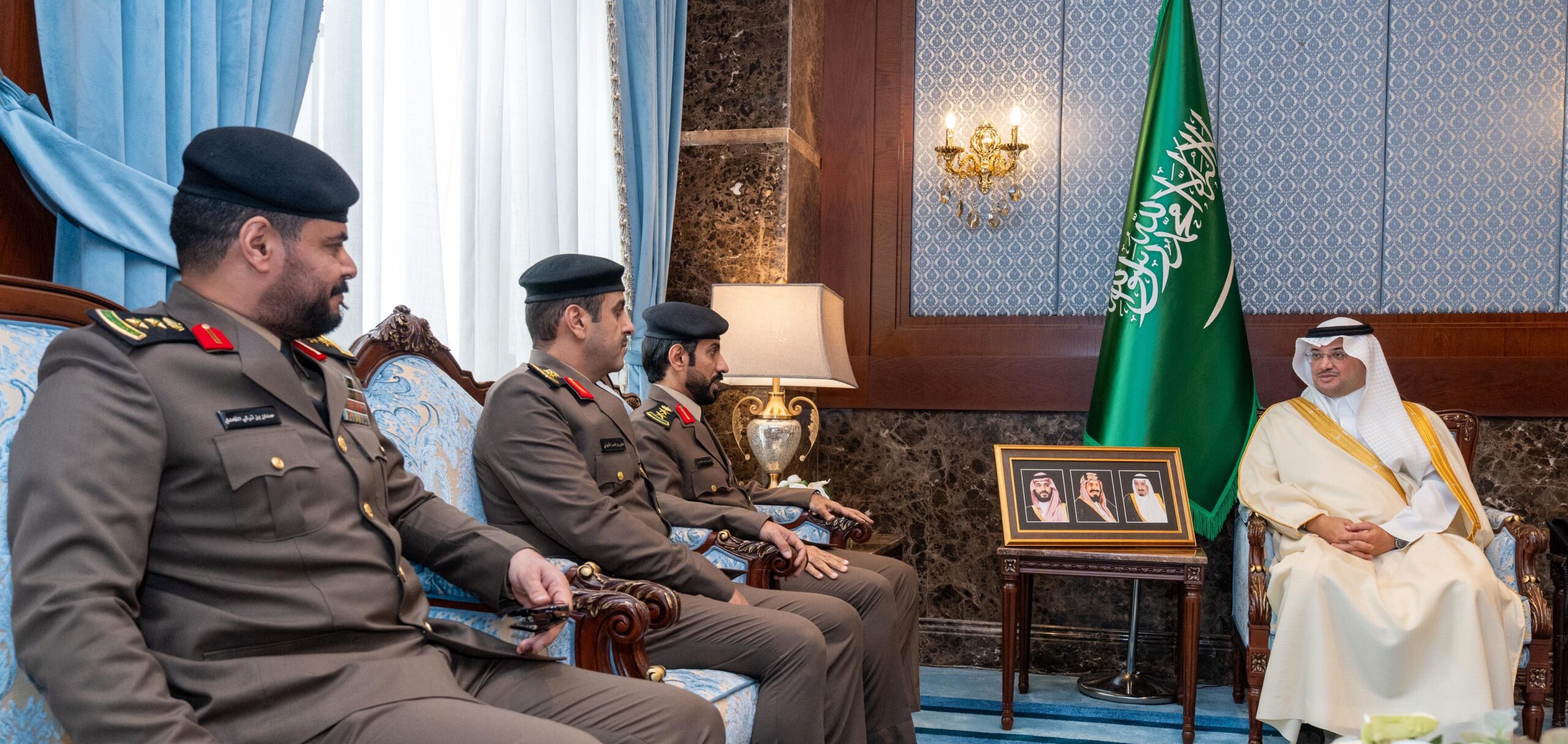جاء ذلك خلال استقبال سموّه لمدير شرطة المحافظة العقيد فهد بن عايش المطيري، يرافقه العقيد ملفي بن ناصر العتيبي، والعقيد حمدان بن تركي الغامدي