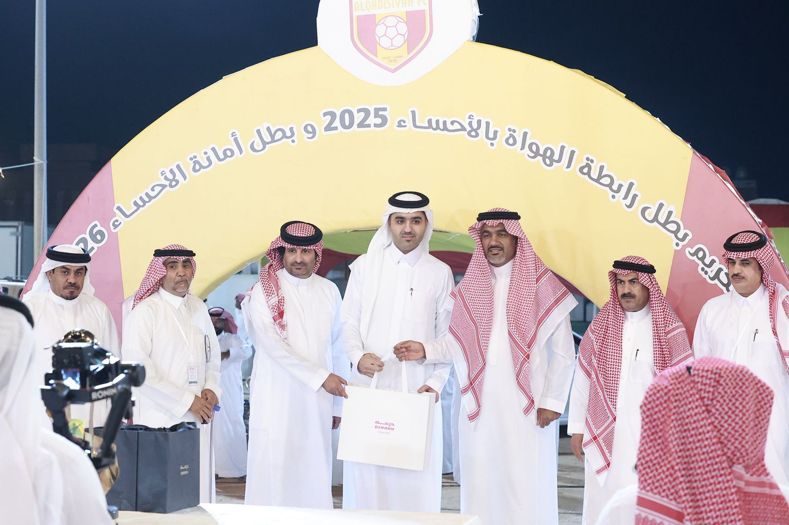 وشهد الحفل تكريم عمدة الرقيقة الأستاذ فهد بن مسفر الجميحي القحطاني بمناسبة حصوله على درجة الدكتوراه، إلى جانب تتويج فريق القادسية ببطولة رابطة الهواة لعام 2025م، وبطولة أمانة الأحساء الرمضانية لعام 2026م، فضلًا عن تكريم الداعمين والرعاة واللاعبين.