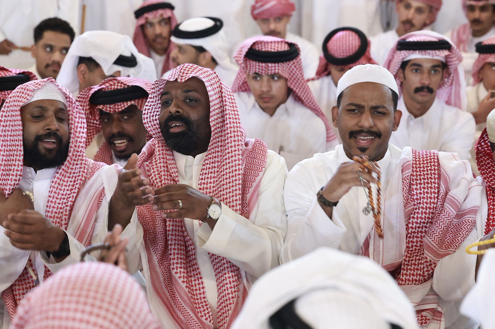 واستُهل الحفل بفقرات فنية متنوعة، شملت الشيلات والأغاني، إلى جانب العرضة النجدية التي قدمتها فرقة الصالحية للفنون الشعبية بالتعاون مع فرقة الرقيقة، بمشاركة الأعيان والشباب، مرددين أهازيج وطنية عكست روح الانتماء، فيما تواصلت الفعاليات بعروض السامري التي امتدت حتى ساعات متأخرة.